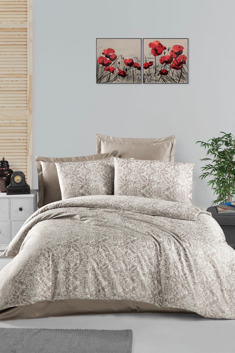 Juego de nórdico de satén de algodón 210 hilos/cm² Capuccino - Marrón glacé