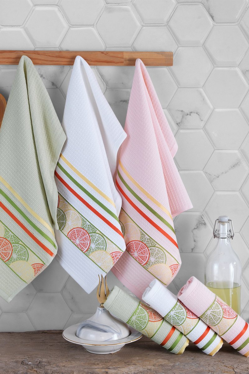 6 paños - Blanco y rosa