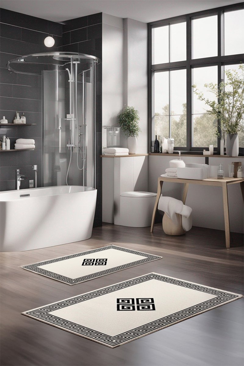 2 alfombras de baño - Beige y negro - 40 x 60 / 60 x 100 cm