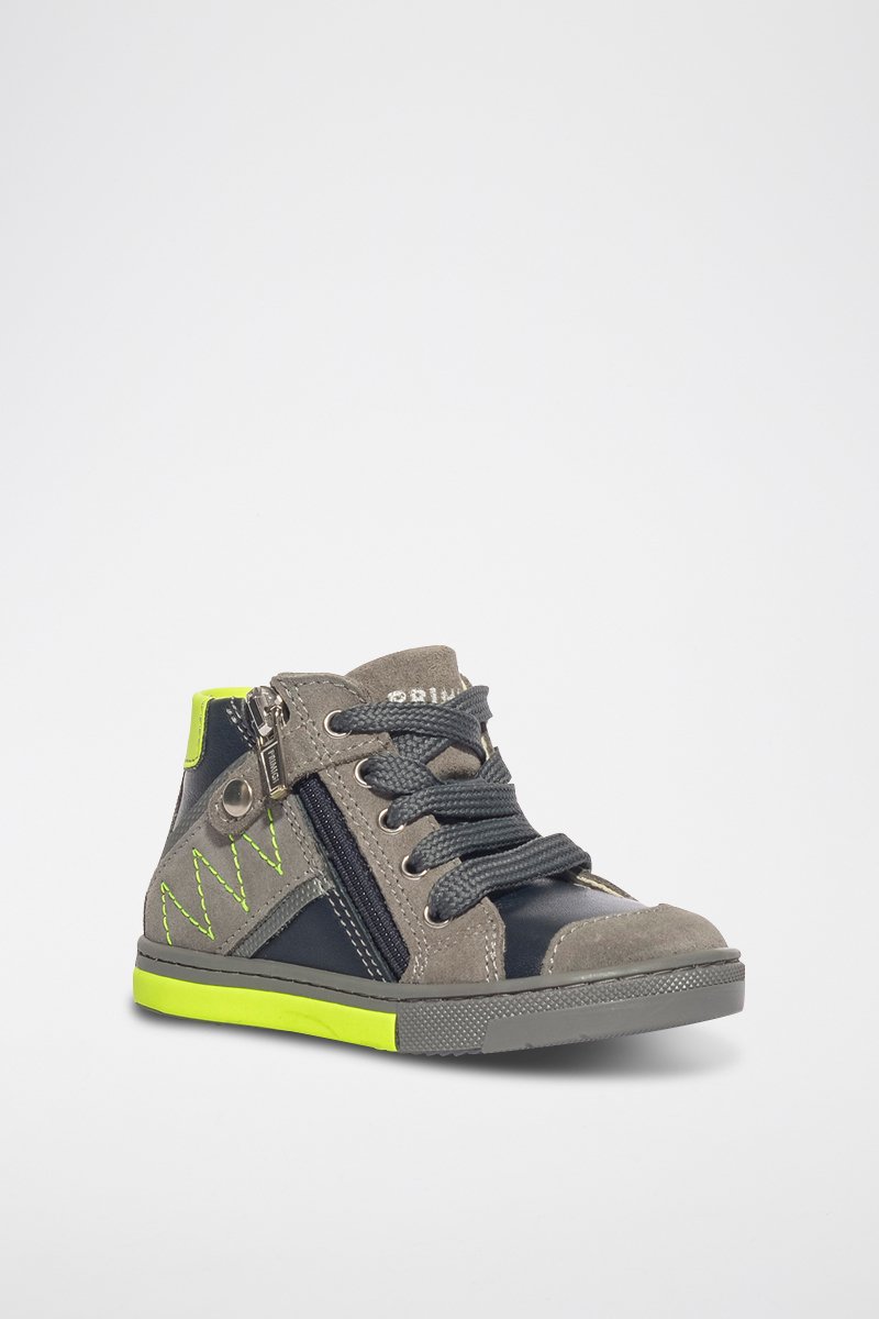 Zapatillas altas de piel Baby Glitter - Negro y beige