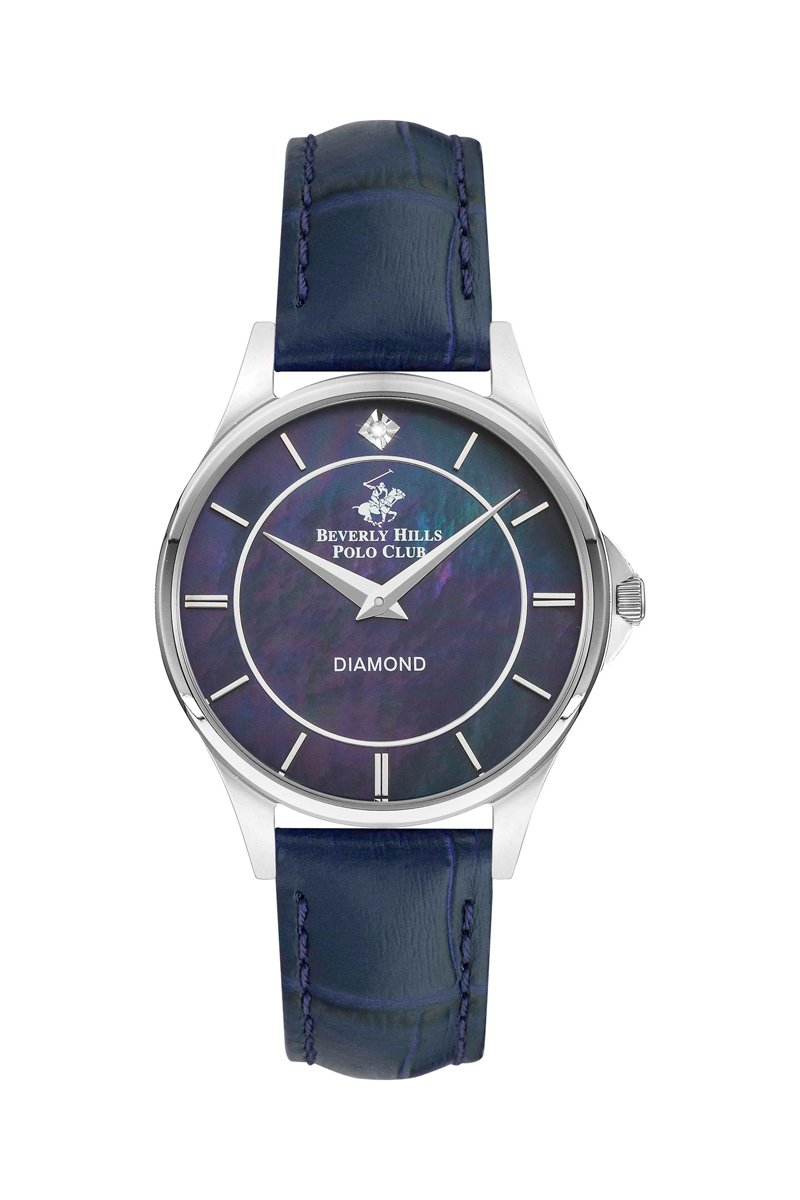Reloj de cuarzo de piel y diamante - Azul y plateado