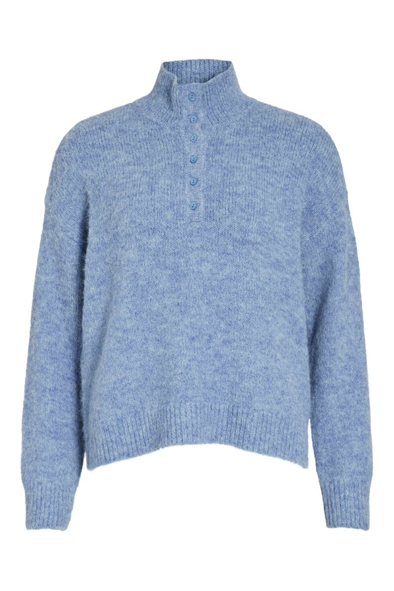 Cuello alto con botón.