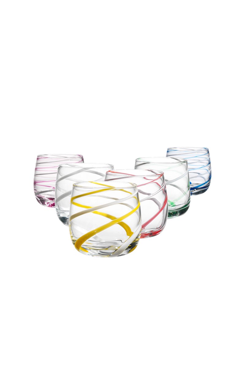 6 vasos de vidrio soplado de manera tradicional Twister - 8,5 cm