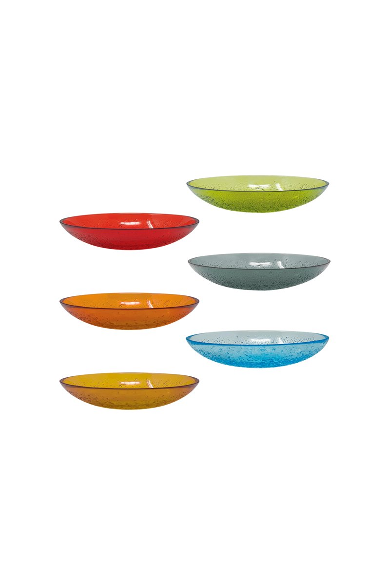 6 platos hondos de vidrio soplado de manera tradicional Bubbles - 21 x 5 cm