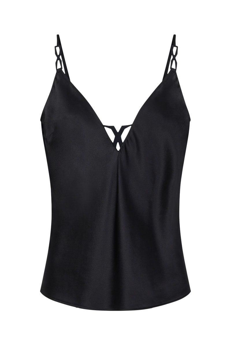 Top de pijama de seda Traxx - Negro