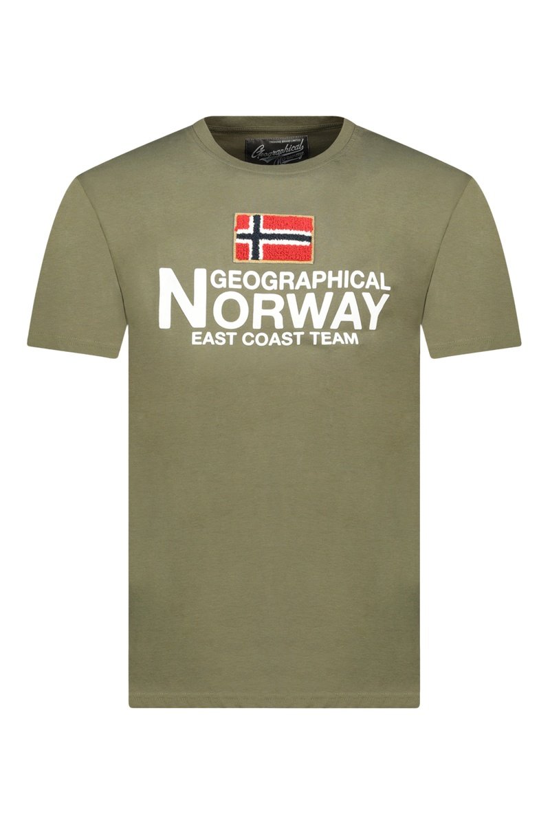 Texto, bandera noruega y logo bordados delante.