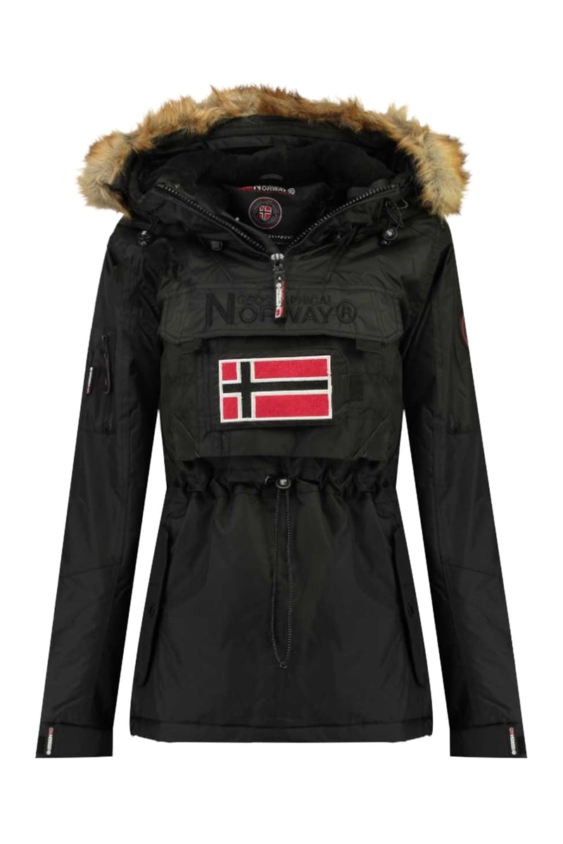 Chaqueta con capucha con pelo sintético, tiras de ajuste y tira ajustable.