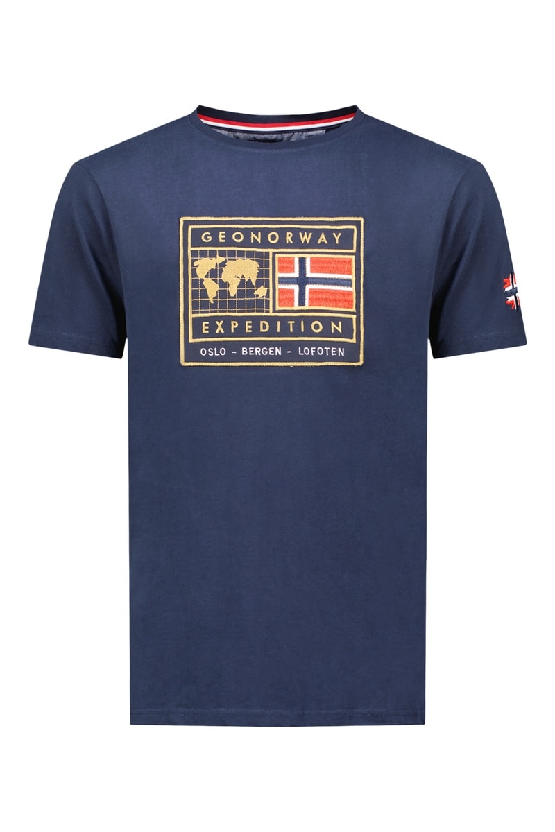 Bandera noruega en la manga izquierda y delante.