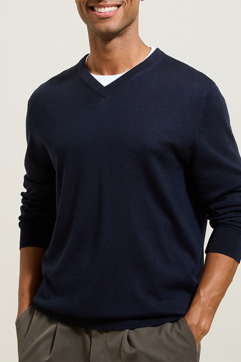 Jersey de lana merino - Azul marino