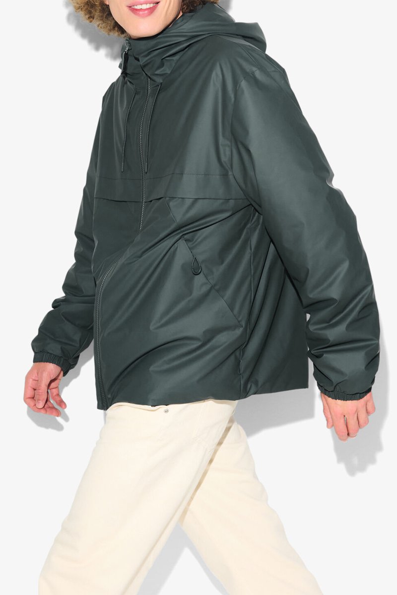Chaqueta con capucha con tiras de ajuste.