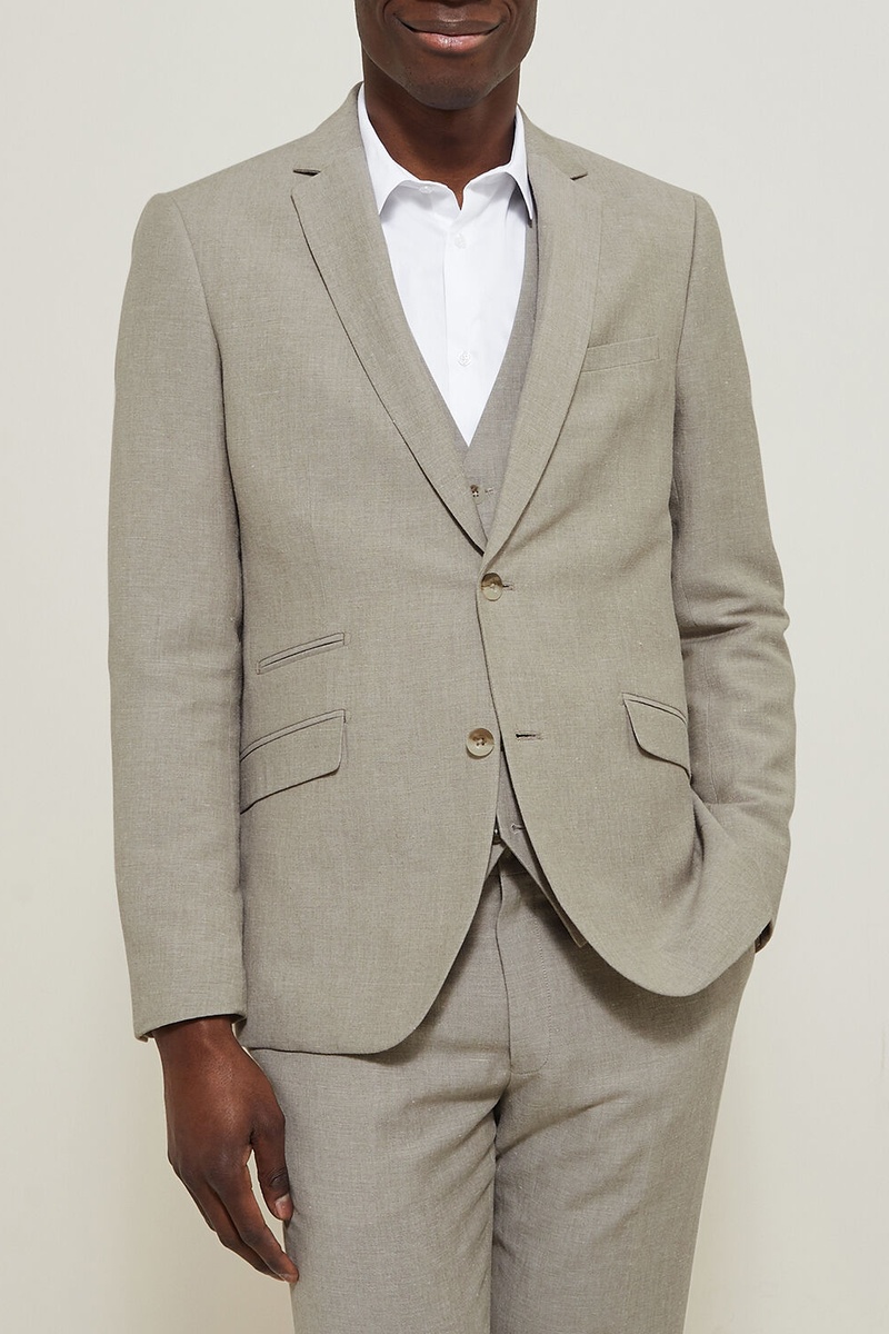 Composición: 60 % lino, 28 % poliéster, 12 % viscosa