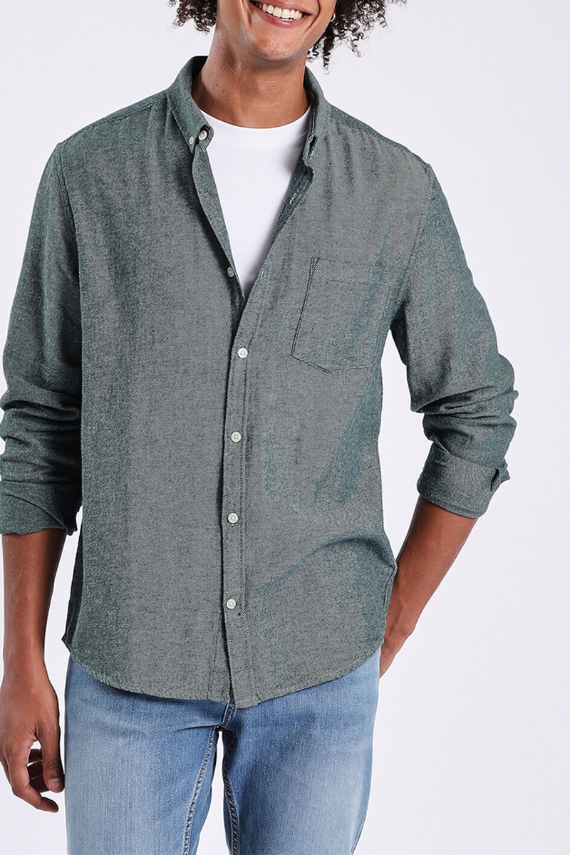 Camisa regular fit - Verde jaspeado