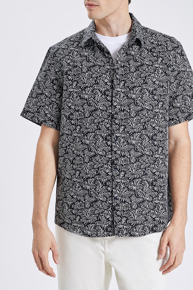 Camisa regular fit de lino - Negro