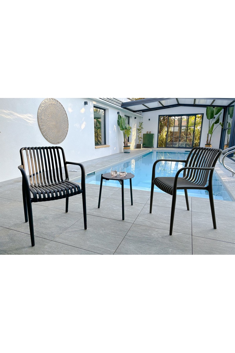 Estable y apilable, aporta un toque fino y moderno a tu jardín o terraza.