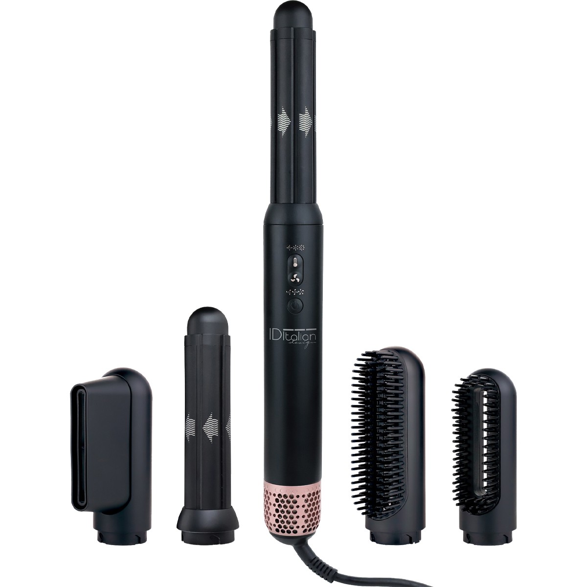 Transforma tu cabello en un instante con este aparato 5 en 1. Esta herramienta versátil con diseño italiano ergonómico te ofrece una infinidad de estilos. Deja libre tu creatividad con esta joya de tecnología que combina rendimiento y elegancia. Equipado con un potente motor profesional, garantiza un rendimiento excepcional y una larga vida útil. Su potencia elevada garantiza un secado rápido y eficaz, mientras que sus cinco cabezales intercambiables permiten una versatilidad inigualable: del brushing tradicional a los rizos definidos, todo en un mismo aparato.