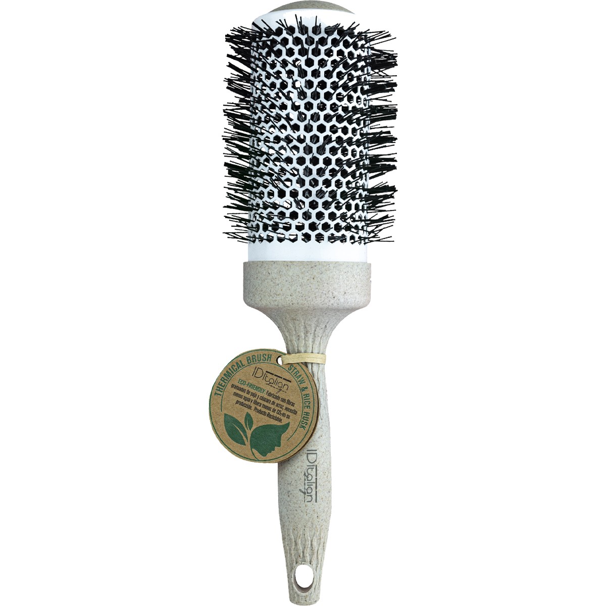Para un brushing perfecto, utiliza este cepillo térmico. Su cilindro de aluminio con revestimiento cerámico y sus púas de plástico distribuyen uniformemente el calor y resisten hasta 230 °C.