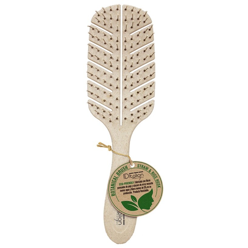 Desenreda el cabello fácilmente gracias a este cepillo. Su forma se adapta a la anatomía de la cabeza para lograr un peinado impecable. Además, está fabricado con paja de trigo y cáscara de arroz, ¡para un resultado completamente reciclable!