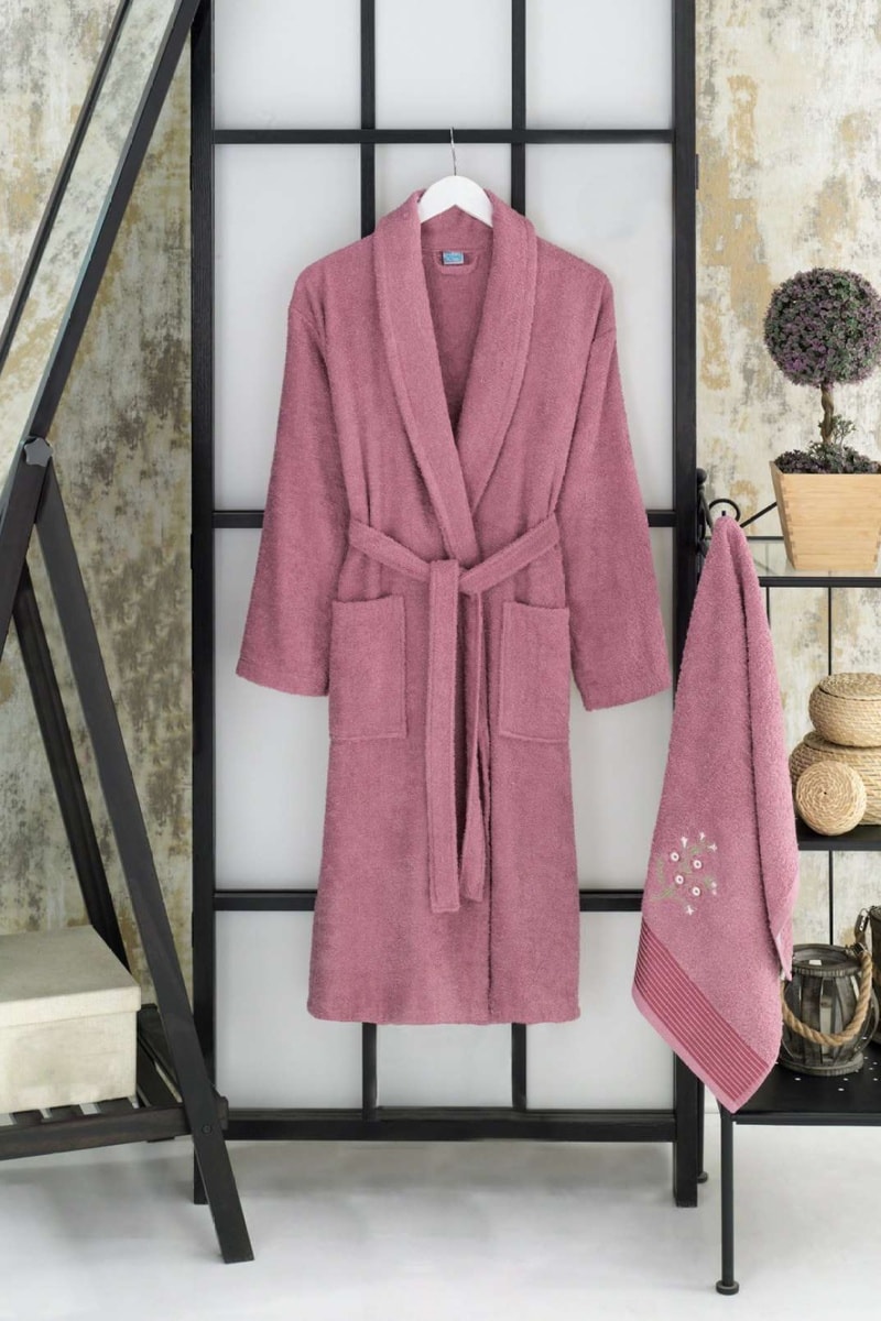 Albornoz de baño y toalla de mano - Ciruela