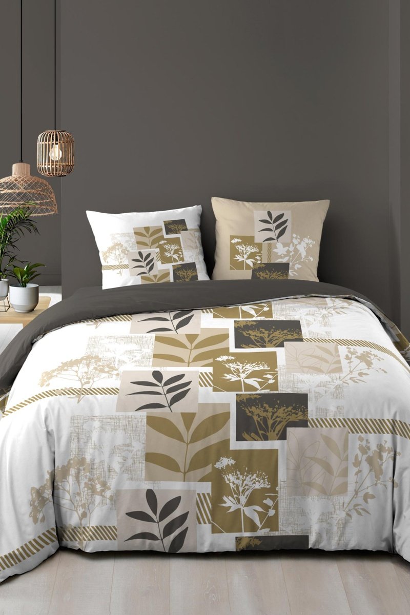 Juego de sábanas de algodón Utopia - Crudo, negro y dorado