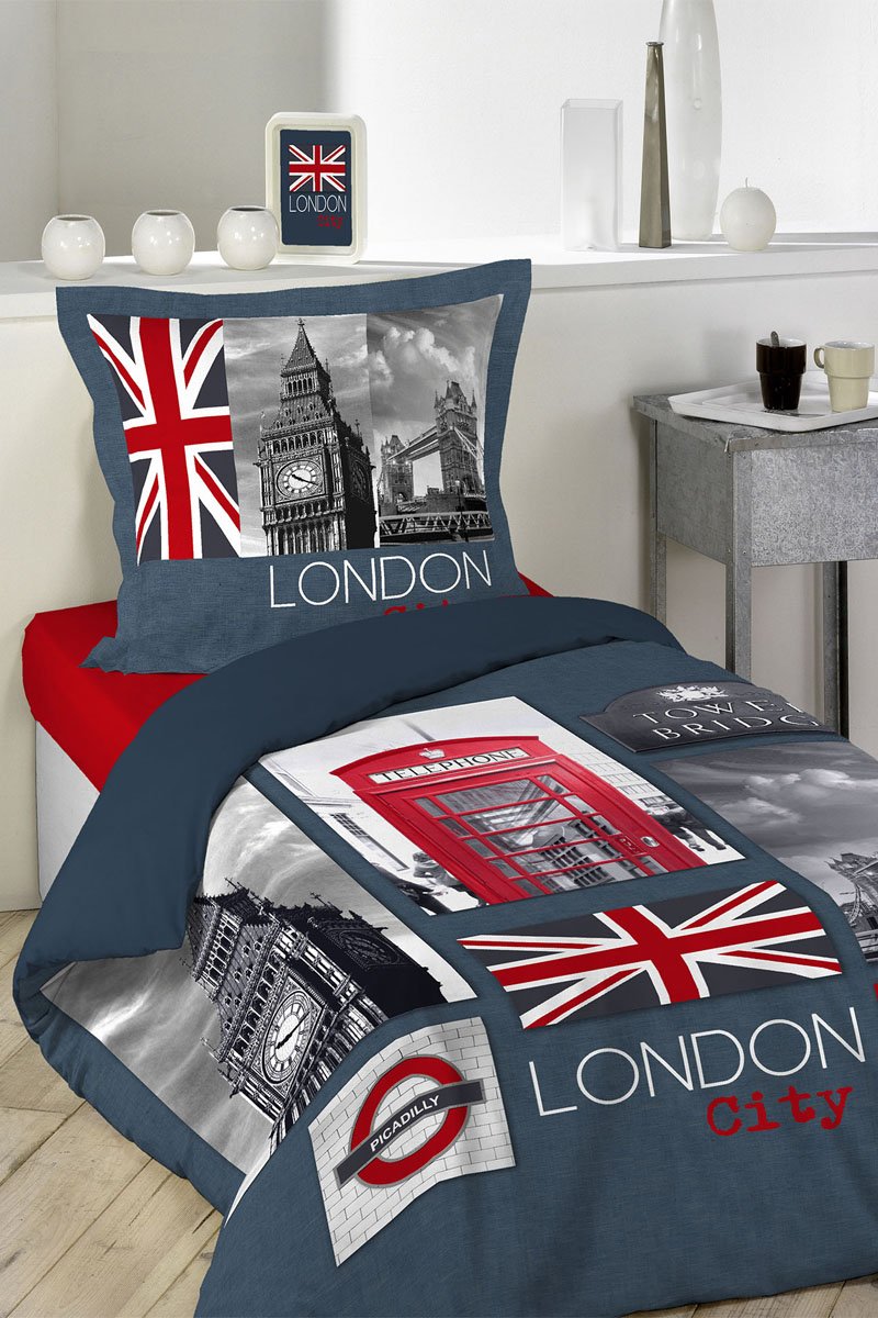 Juego de nórdico de algodón 42 hilos/cm² City London - Gris