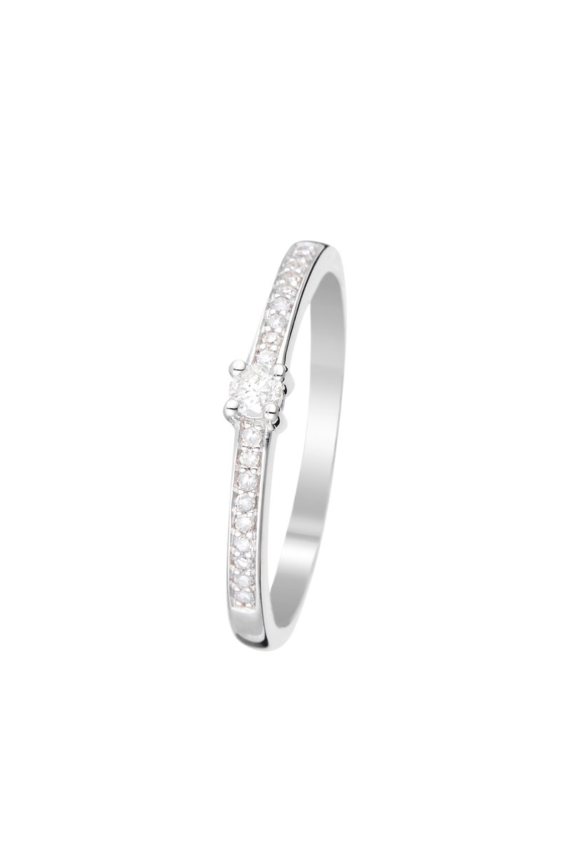 Solitario de oro blanco con 19 diamantes.