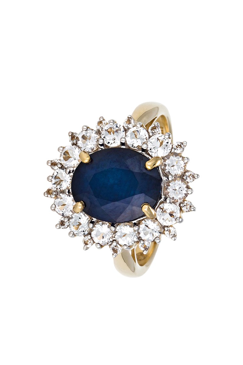 Material: oro amarillo 375/1000, topacio y zafiro 3,5 quilates