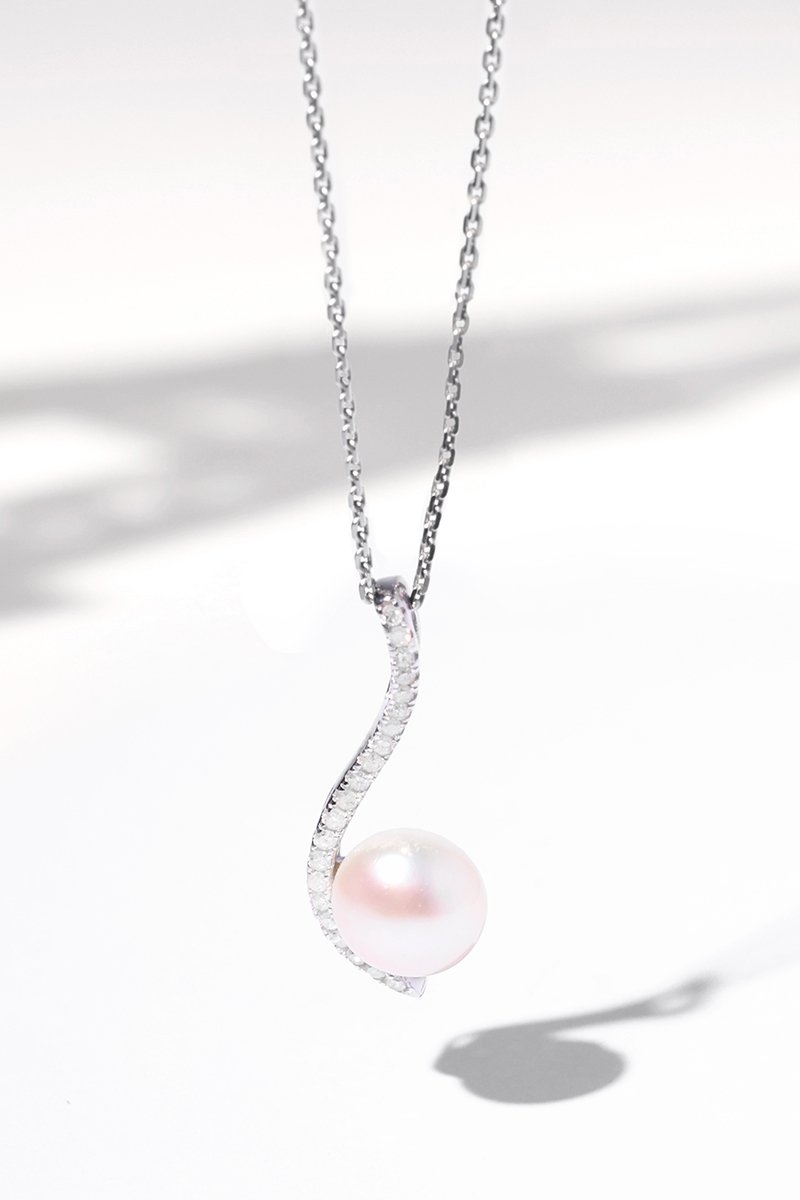 Colgante Vague sublime - Oro blanco, diamantes y perla cultivada