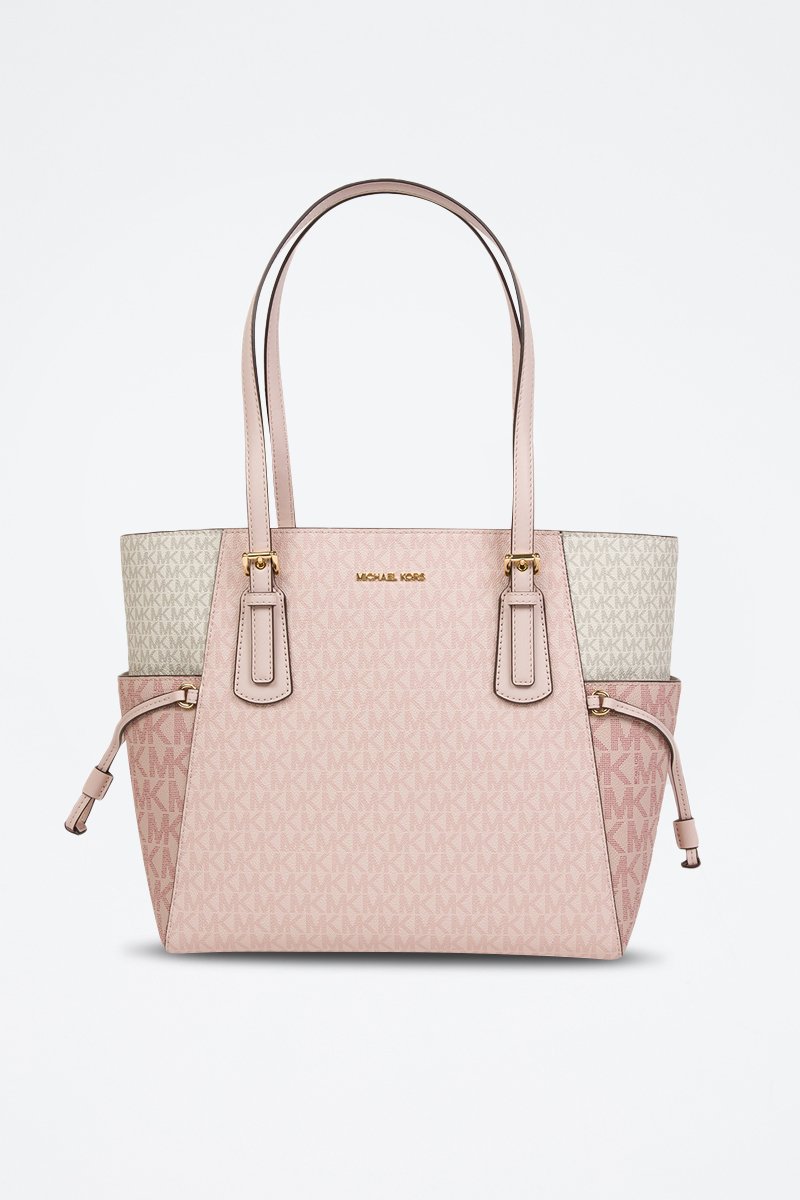 Bolso shopper East West - Blanco y rosa