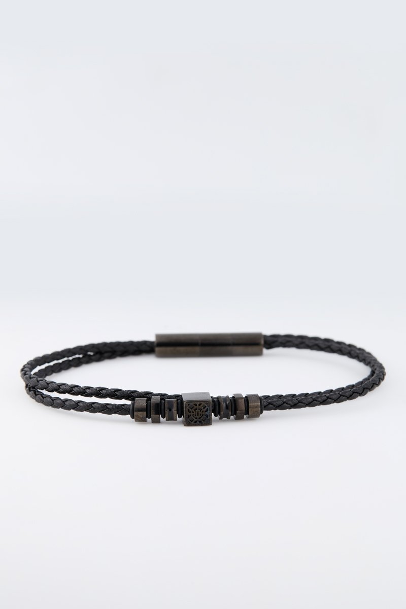Pulsera de piel y chapado en ion gris.