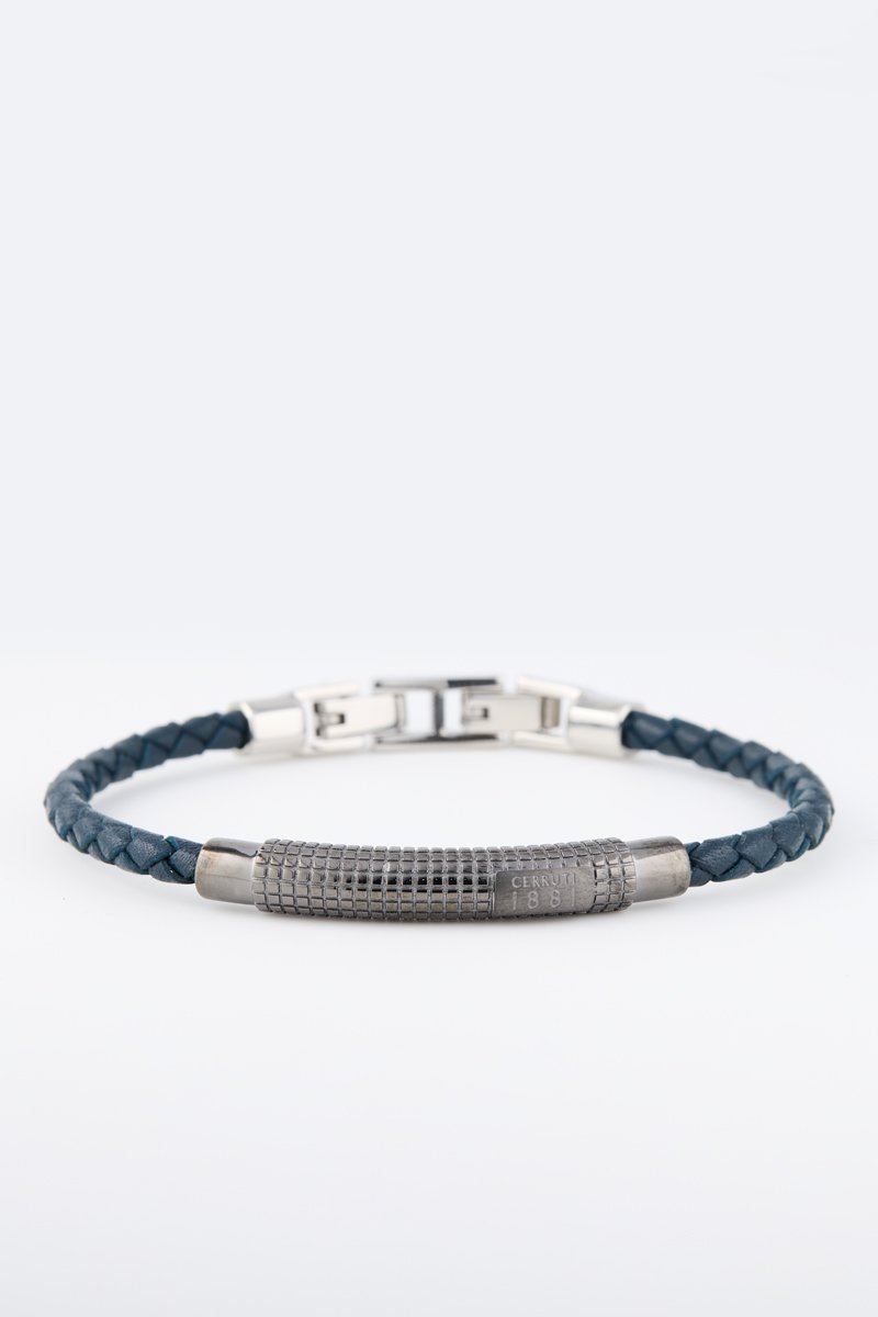 Pulsera de piel y chapado en ion gris.
