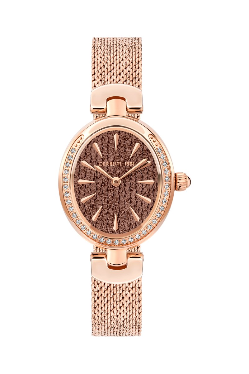Reloj de cuarzo de acero con cristales Swarovski Nemi - Rosa dorado y marrón