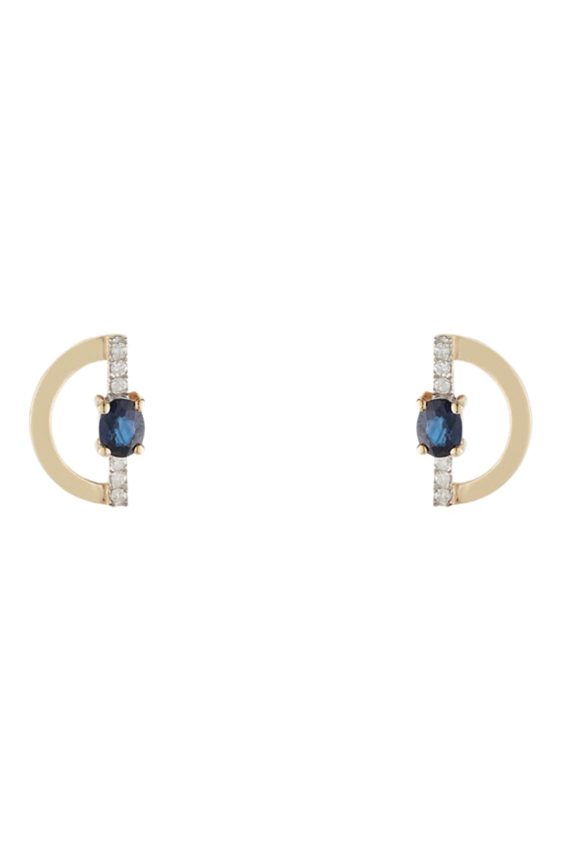 Pendientes de oro amarillo con 6 diamantes y un zafiro.