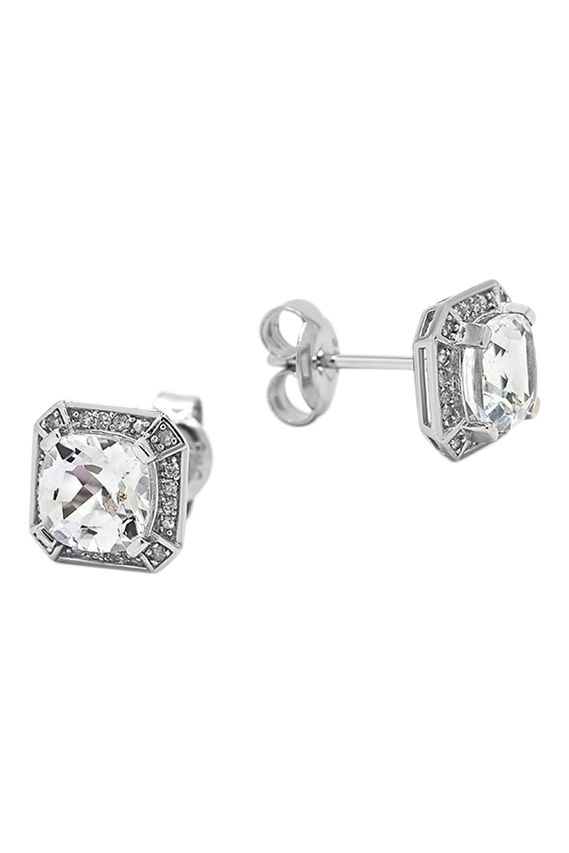 Dormilonas de oro blanco con 16 diamantes y un topacio.