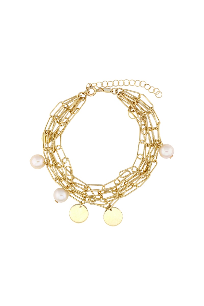 Pulsera de oro amarillo con perlas.
