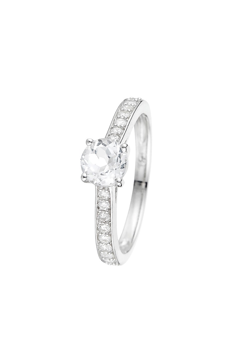 Anillo de oro blanco con 18 diamantes y un topacio.