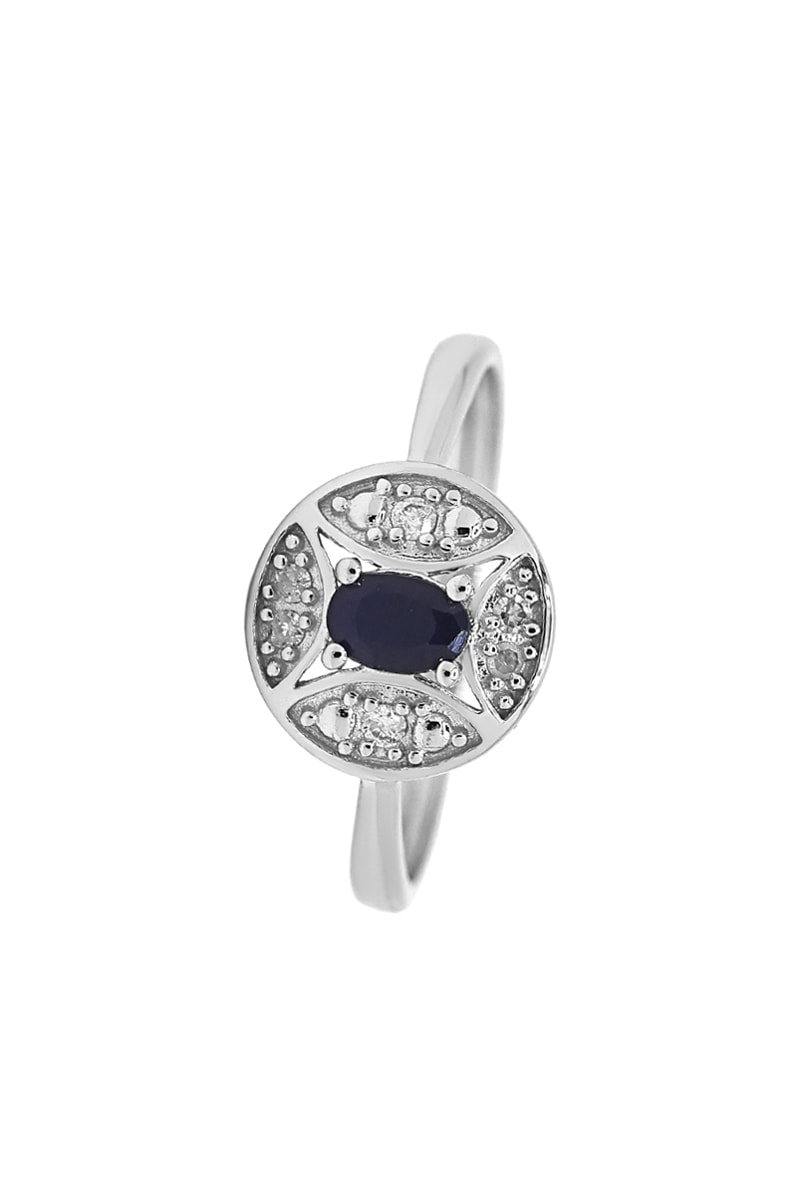 Material: oro blanco 375/1000, diamantes de 0,046 quilates/6 y zafiro de 0,25 quilates/1