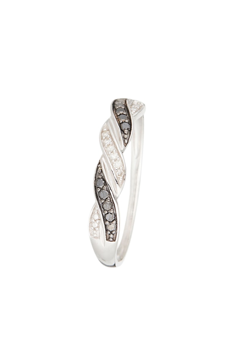 Anillo de oro blanco con 6 diamantes y 8 diamantes negros.