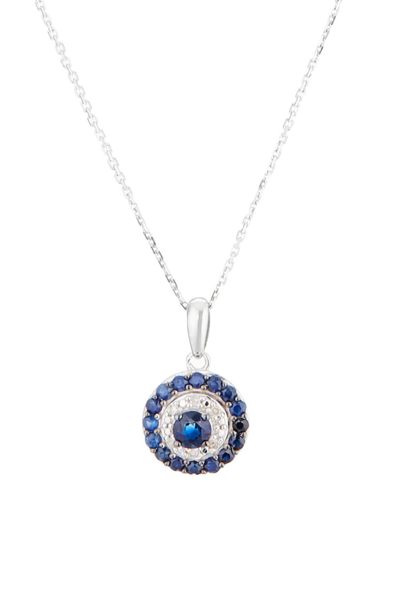 Colgante de oro blanco con 14 diamantes y 17 zafiros.