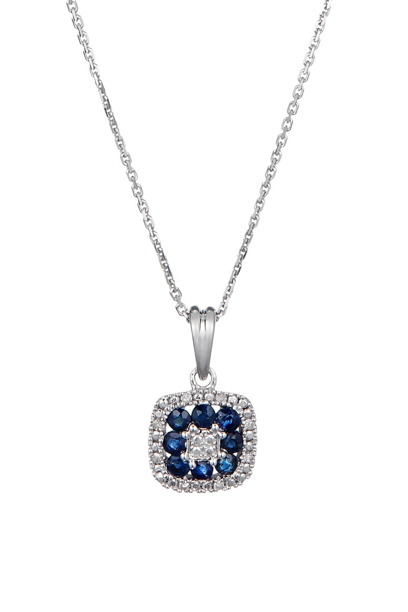 Colgante de oro blanco con 8 diamantes y 8 zafiros.