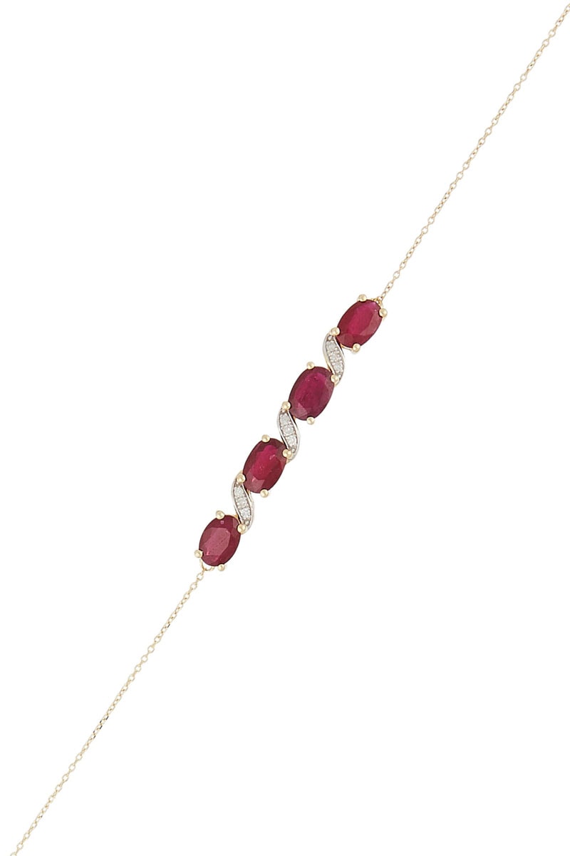 Pulsera de oro amarillo con 9 diamantes y 4 rubíes.