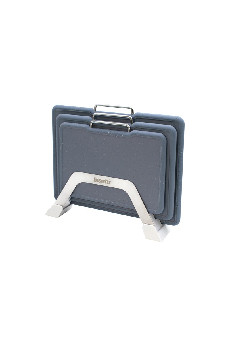 El soporte de acero inoxidable de diseño ergonómico está pensado para tener siempre la tabla de cortar adecuada al alcance de la mano y en el momento adecuado, además de tener la cocina ordenada y de lo más eficiente.