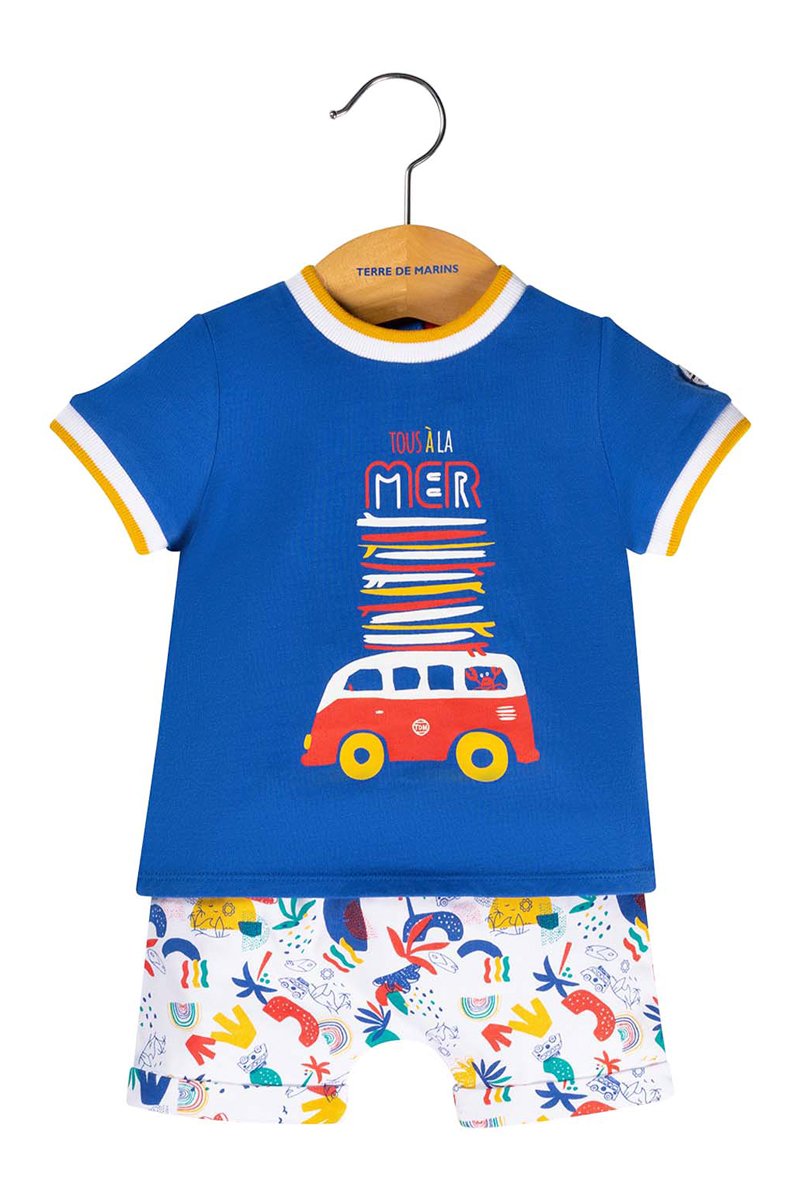 Camiseta y short Lubarou - Blanco, azul y amarillo