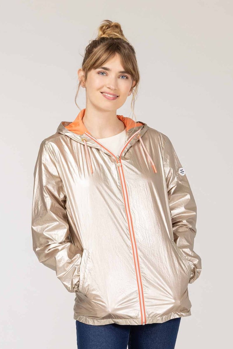 Cortavientos con capucha - Blanco y naranja