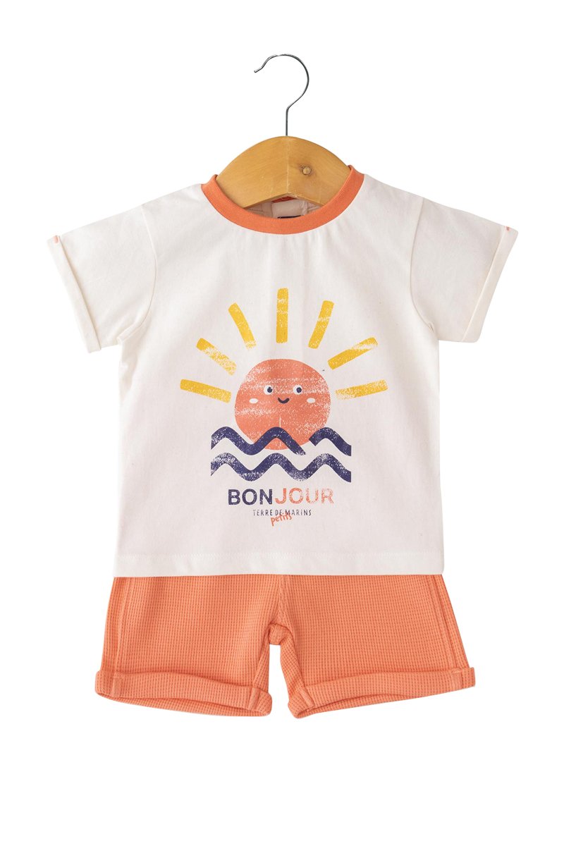 Camiseta y short - Blanco, azul y amarillo