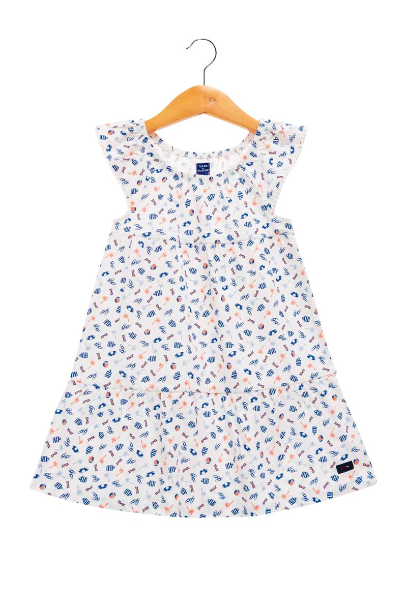 Vestido - Blanco, azul y naranja