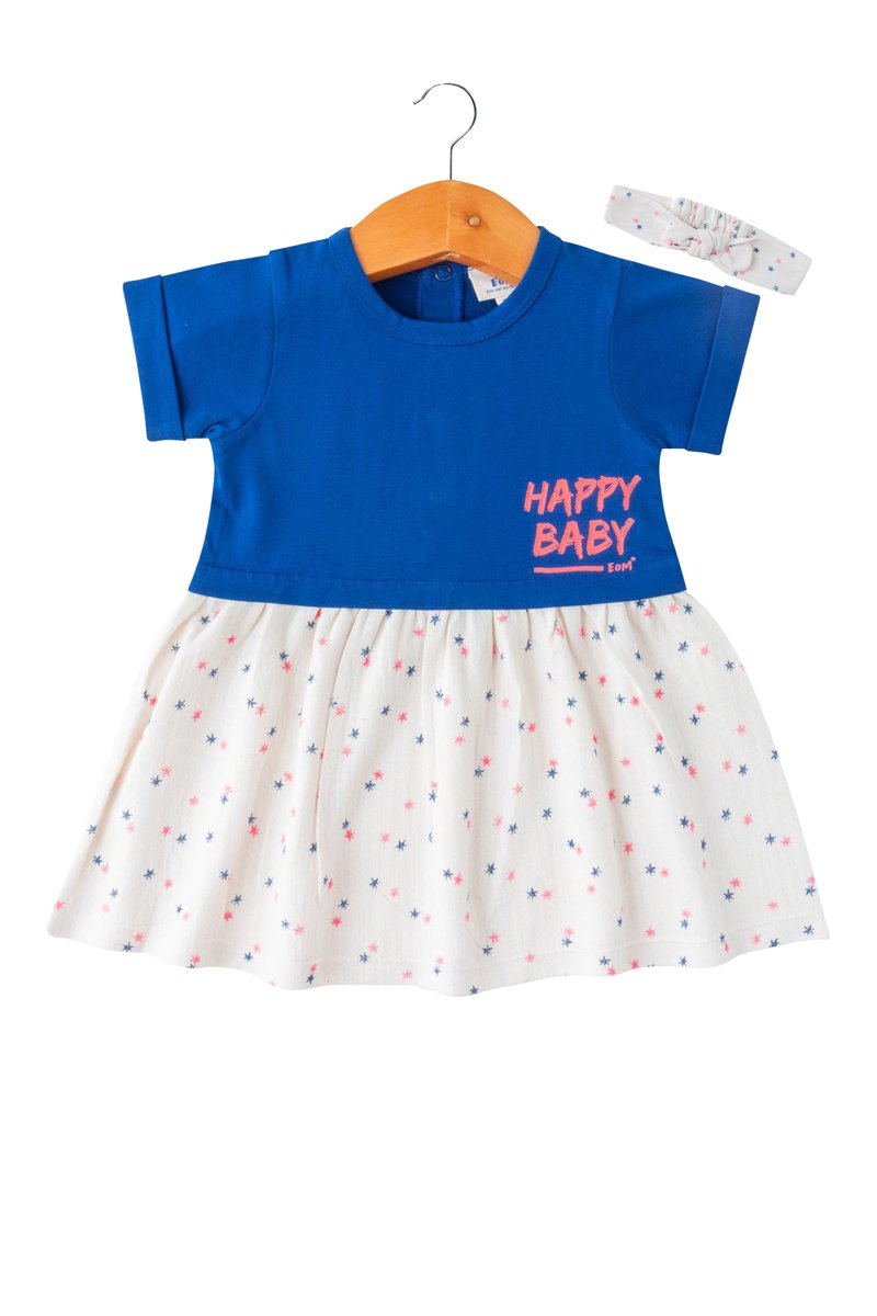 Vestido y cinta para el pelo - Blanco, azul y rosa