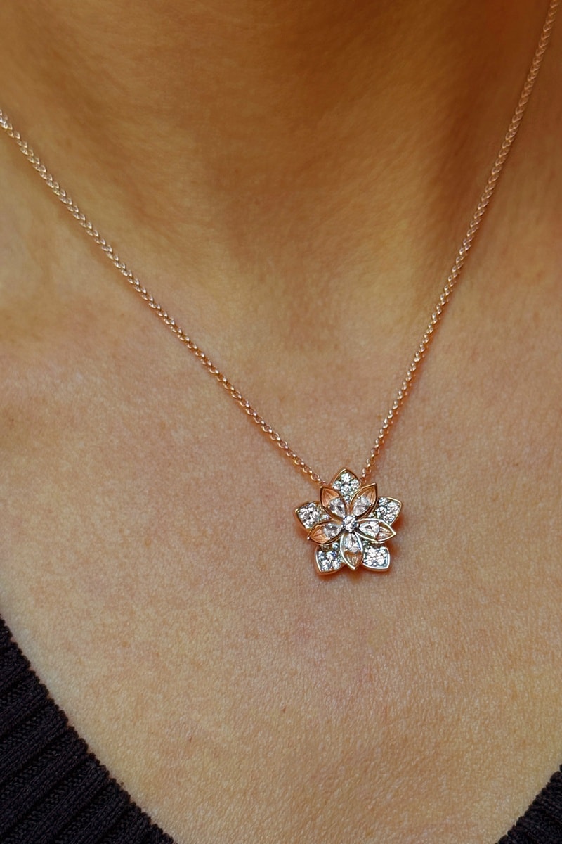 Material: plata chapada en oro rosa y circonitas