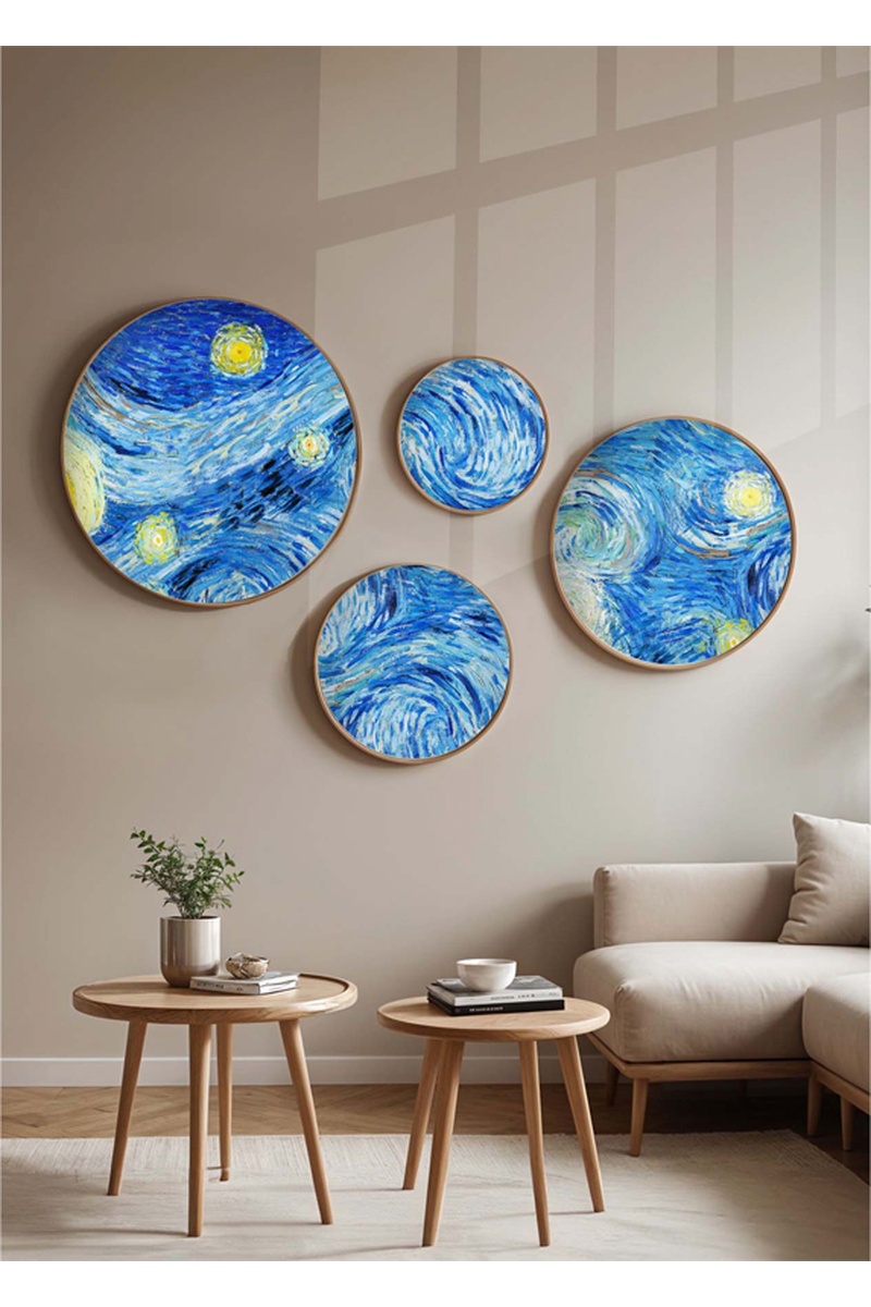 4 cuadros redondos.