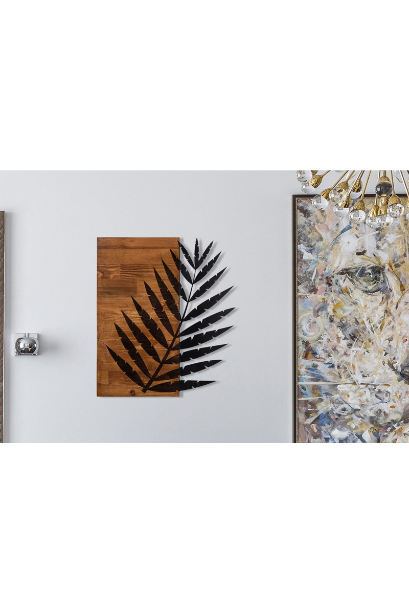 Adorno mural Leaf - Negro y natural - 50 x 58 cm