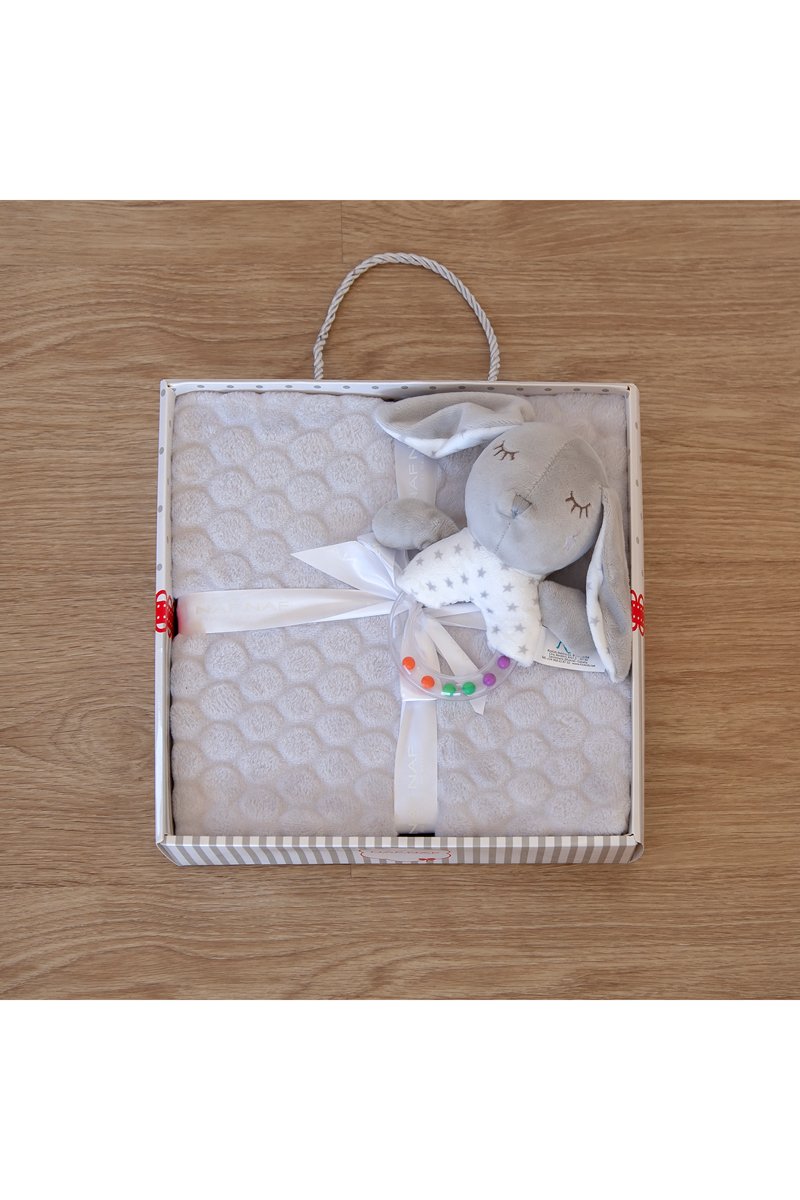 Manta Liso con sonajero - Desde recién nacido - 80 x 110 cm - Gris